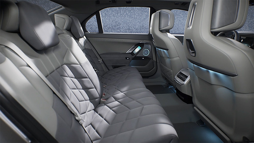 Inside the BMW i7 Sedan awaits a stylish interior. Offering plenty of space and light, it provides a sanctuary with technical highlights that deliver fascinating and entertaining moments.